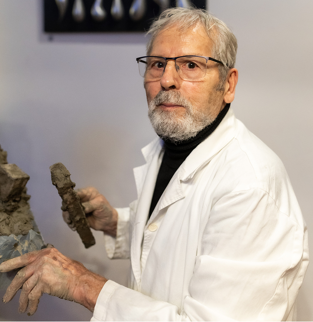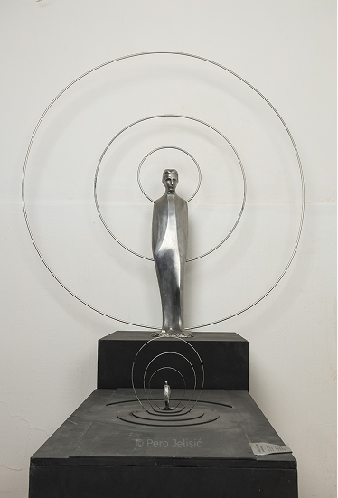 The theme of his sculptural oeuvre from the earliest beginnings in childhood to today is Nikola Tesla, whose entire series of portraits in terracotta, bronze, aluminum, from realistic to cubist ones, he executed in full figure as busts, medals, reliefs, and original compositions. For his opus on Nikola Tesla, he won an innovation award, and his work for the Tesla monument in Prague received a redemption award at an international competition.