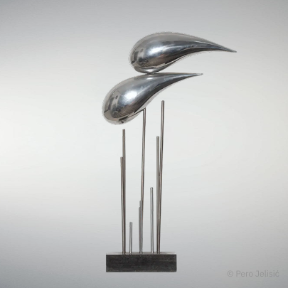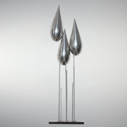 working in the studio deep into the night, with the soft music of Radio Luxemburg, I was thinking about the phenomenon of the emergence and transience of life, the unique beauty of everything that exists on our Planet and the Universe. I wanted to transpose some of that into my sculpture, without it being banal, descriptive. Thus, next to the sun and the moon, my DROP and my FLAME suddenly emerged from water and fire, almost simultaneously.